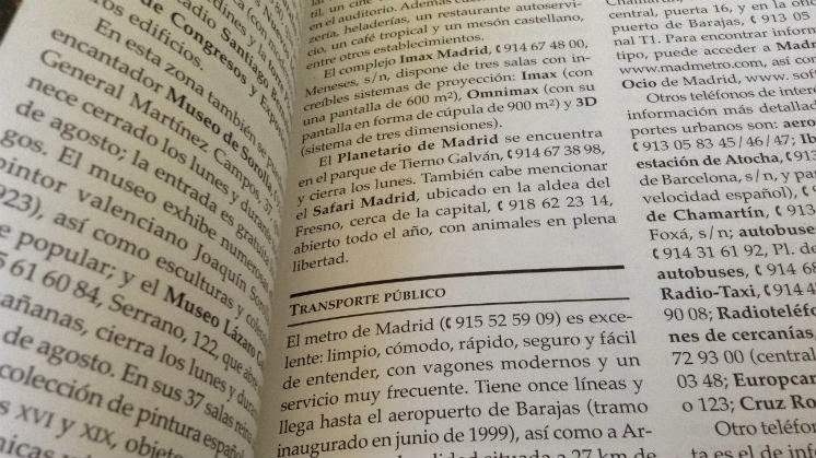 ¿Qué tiene? Ofrece información de todas las regiones de España, con detalles de los atractivos principales (lugares de tapeo, castillos, corridas de toros, etc), repasa la historia del país, da coordenadas para recorrer el legado cultural y hasta cuenta con un direccionario que va desde oficinas de turismo hasta hoteles o restaurantes. Lugares que probablemente no sean elegidos por el viajero (por el costo de algunos de ellos), pero que sirven como referencia económica y geográfica.