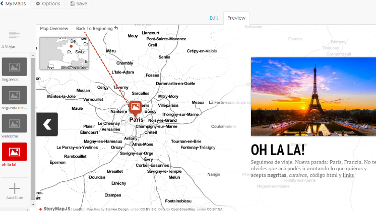 StoryMap JS, del Knight Lab de la NorthWestern University de Estados Unidos, es un buen ejemplo de cómo usar los mapas como medio para organizar y presentar la información. Al evento, un lugar. Al dato, un contexto. Ese parece ser el objetivo y vaya que lo cumplen con creces.