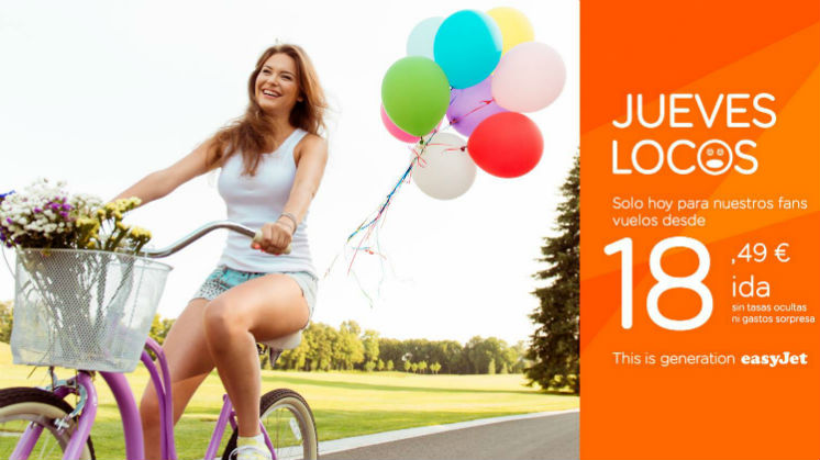 Aunque está claro que hablar de vuelos baratos en una aerolínea low-cost parece una redundancia, en esta caso es una promoción que funciona cada semana y que, de paso, es una buena manera de buscar vuelos y buenos precios de manera simple. ¿De qué se trata? De los "Jueves locos" de EeasyJet -en su versión en español-. Cada jueves, en el Facebook oficial de EeasyJet en español (www.facebook.com/easyjetES) aparecen las mejores tarifas con los últimos asientos disponibles para reservar, con salida desde los principales aeropuertos de España.