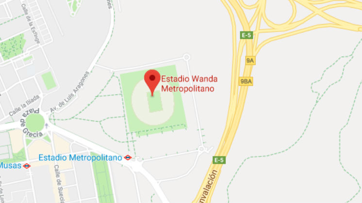 - Al Wanda en Metro. La estación más cercana es la de ‘Estadio Metropolitano’, correspondiente a la Línea 7 (se toma la Línea 5 desde Gran Vía y se combina con la 7 en Pueblo Nuevo). Pero también puedes llegar desde las estaciones de ‘Las Rosas’ (Línea 2) y ‘Canillejas’ (Línea 5) que se sitúan a unos 15 minutos a pie a pie.