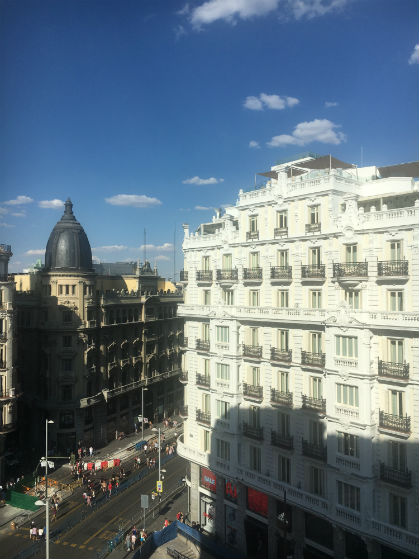 Gran Vía desde el sexto piso: la vista desde una de las ventanas del Hostal |