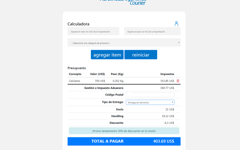 👉 Acá podés probar la calculadora de Aerolíneas Courier