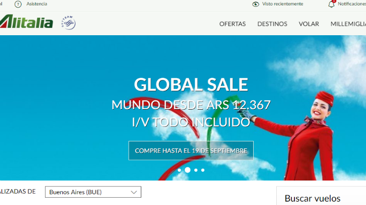 Buscar disponibilidad: buscador de ofertas del "Global Sale" de Alitalia.