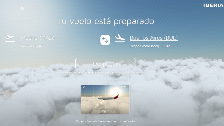 "Volar desde casa". Ese parece ser el lema de la nueva aplicación de la aerolínea española Iberia. Disponible desde flight.iberia.com, "Flight Iberia" o "Vuela por el mundo" es el proyecto presentado en las últimas horas y que ofrece la posibilidad de volar desde una computadora, teléfono o tablet a todos los destinos de Iberia. De Europa, de América, de Asia. Donde uno quiera. Sólo hay que entrar en flight.iberia.com, elegir el destino y volar. Recomiendan sincronizar el teléfono y utilizar auriculares para mejorar la experiencia de vuelo. Lo segundo parece ser de lo mejor de la app: grabaron la voz de un piloto y de una tripulante de cabina y le sumaron sonidos de aeropuertos y ruidos del interior y exterior del avión.